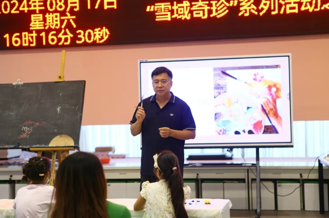 2024年暑期,“布达拉宫——来自雪域的世界文化遗产”特展在天津美术馆开幕,吸引了众多前来观展的游客和观众朋友们。为配合本次展览,天津美术馆在暑期延时闭馆期间特别策划了“雪域奇珍”系列文化艺术活动。8月17日,系列活动第三场“雪山油画”在大家的期待中如约举办。课上,主讲老师首先带大家欣赏了雪域高原的自然风光,感受雪山的圣洁、浩瀚苍穹的辽阔与藏族人民的淳朴。接着,主讲老师结合中外经典油画作品介绍了雪山油画的创作方法与技巧。