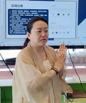 课程开始,主讲老师向同学们介绍了珍珠的产生原因、分类、颜色和蚌的著名产地等知识,引起同学们的学习兴趣和热情。