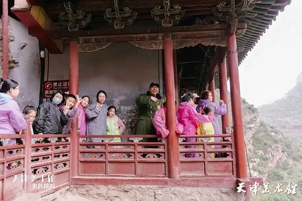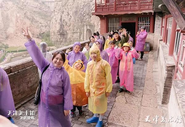 去悬空寺和应县木塔的那天遇上了雨,从车上下来的那一刻,风吹得站不住。在风雨的陪伴中,孩子们开始了向悬空寺的探险。