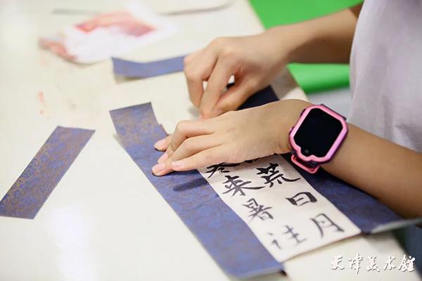 怀着满满的期待,“第十一届油画主题夏令营”开营啦!同学们首先了解到书画装裱是书画作品为方便赏析,从作品保护、便于张挂等方面进行加工处理。书画装裱形式包括:长卷、立轴、册页等。装裱工艺可分为六部分:备料;上浆托纸;裁画心;画心与镶嵌材料的组合、定型;复画上背;装天地杆轴,挂网结带等。在老师示范书画装裱过程后,同学们开始跃跃欲试,宣纸、绫、浆糊,一件简易版的书画装裱作品就此诞生。