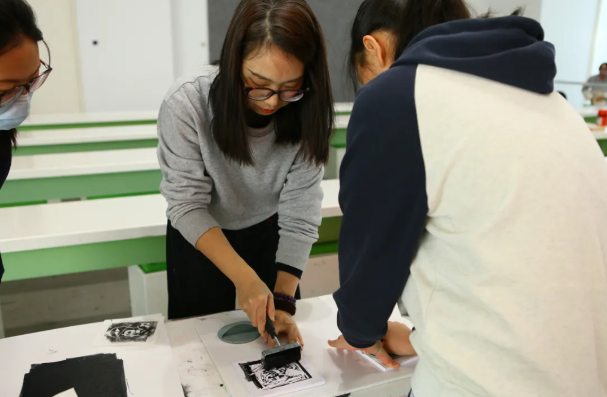 随后,同学们通过视频直观地了解藏书票的制作流程。纸、笔、刻刀、雪弗板、滚轮、油墨,搭配木蘑菇或马莲,再加上一点点耐心与创意,便可完成一幅微型版画。实践环节中,大家亲手创作,不仅沉浸式感受版画艺术的魅力,更体会到书籍主人对藏书的珍视之情。