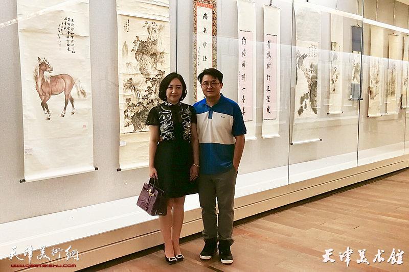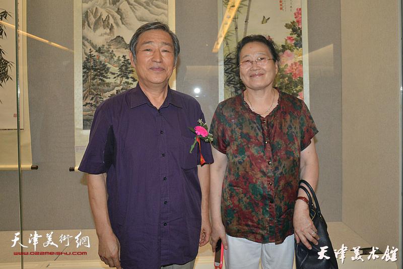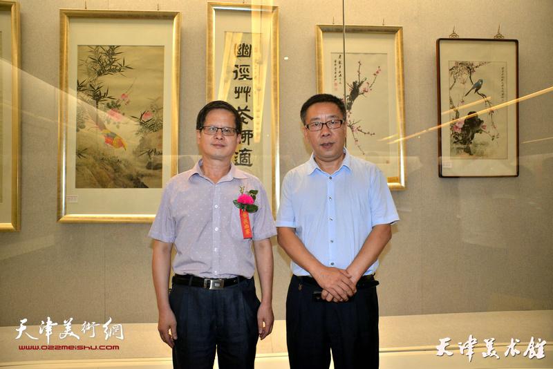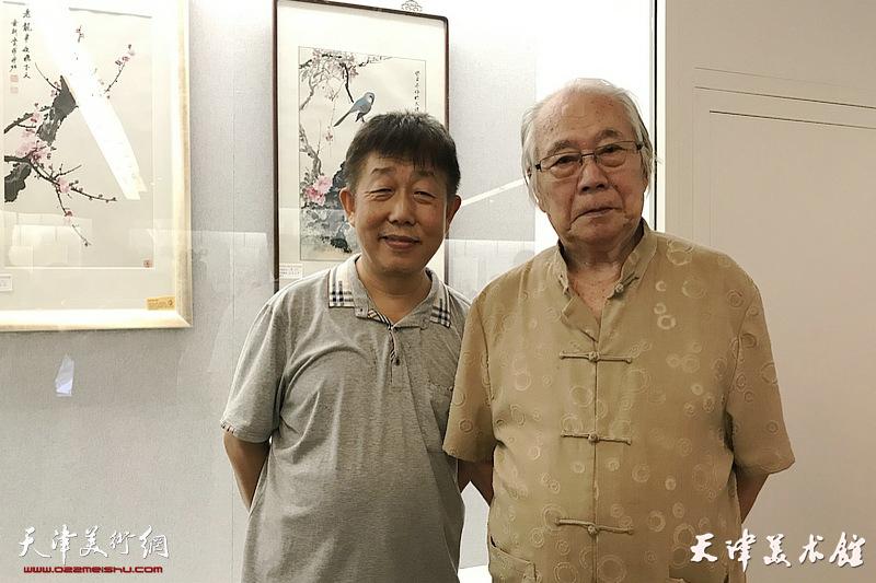 袁卫平与中国国际书画艺术研究会秘书长傅志刚在画展现场。