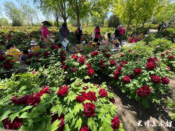 “牡丹研学团”早早就集结完毕、准备出发。一路上,孩子们欢歌笑语,期待着这次快乐的旅行。京津国色天香牡丹园是我国北方以牡丹为主题的最大的生态植物园,“五·一”假期百万株牡丹迎来盛花期。同学们乘坐小火车徜徉在片片花海之中,牡丹以其独有的绚丽花色向大家展示国色天香的风采。