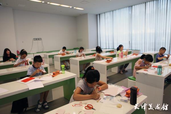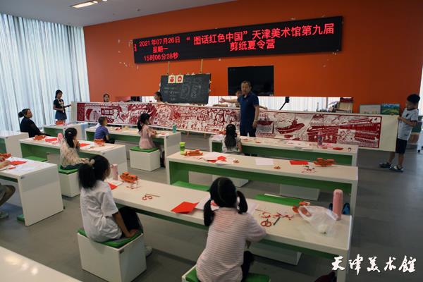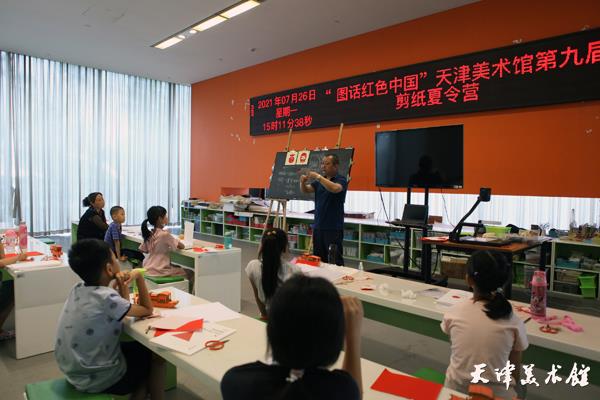下午是剪纸学习,也是本次夏令营的主题活动。主讲老师是天津民间文艺家协会剪纸艺委会会长李强老师,他创作了多幅剪纸长卷作品,庆祝建党100周年。从剪纸小白到学会创作,同学们对剪纸课程充满了期待。