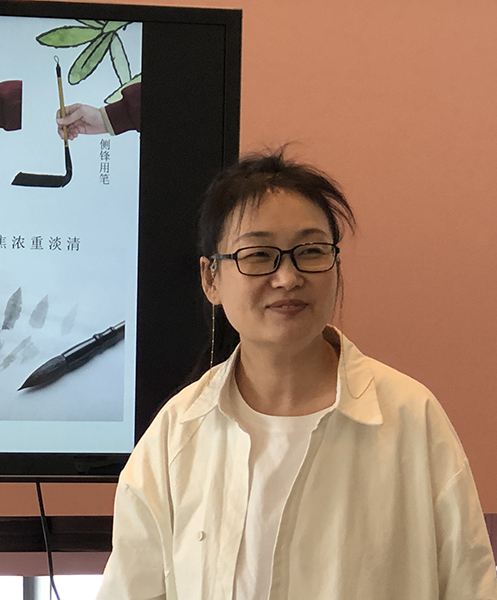 徐老师首先带大家了解了齐白石爷爷的绘画经历与艺术特色,介绍了国画用品、毛笔的握持、用笔方法等基础知识。为培养学生的学习自主性,老师从水墨画调色教起,鼓励同学们从倒墨开始体验,用纯粹的墨色让大家直观感受墨色浓淡深浅的变化。