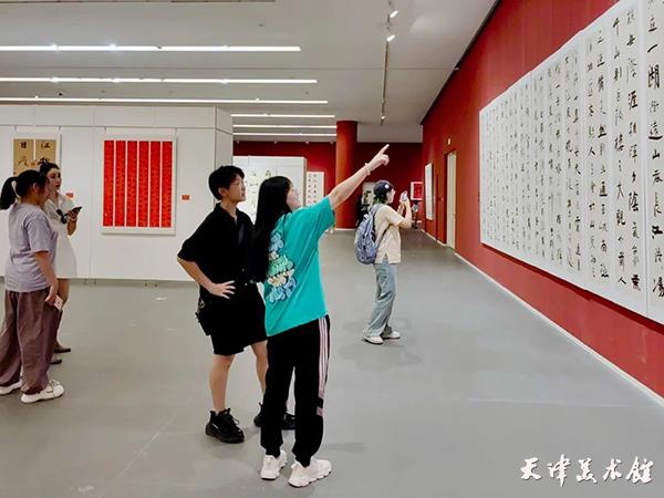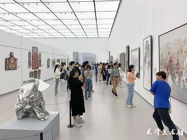 天津美术馆为观众筹备了五场精彩纷呈的展览,涵盖版画、书法、国画、油画、雕塑、水彩、壁画等多种艺术门类。在“刀耕墨染 救亡图存——天津博物馆馆藏版画展”展厅中,观众重温经典作品,缅怀革命先烈。在“艺道传薪——天津美术学院美术与书法学科研究生教学展”上,观众欣赏美院师生优秀的创作成果。在“春游——李叔同歌词书法邀请展”中,观众伴随悠扬的旋律,欣赏中国当代书法名家以中国近代文化先驱李叔同创作的一大批经典歌词为主题的书法作品。在“师魏传薪——王树秋书法作品展”上,欣赏到王树秋先生创作的二百余件书法作品。在“流金岁月 丹青灿烂——天津美术馆藏主题性中国画作品研究展”中,观众体会到主题性绘画作品勾画的时代流转的心迹,熔铸的艺术探索精神。