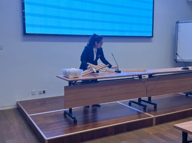 在动手实践环节,主讲老师通过直观演示,现场搭建了一座“拱桥”并邀请同学们走上“拱桥”,体会“拱桥”的智慧与坚固。不但让同学们了解了中国古代贯木拱桥的搭建技艺,更将深厚文化底蕴以润物无声的方式浸润学生心灵,培养学生对传统文化的热爱。课程最后,通过对2022年“福建宁德屏南万安桥突发大火”这一文物古建损毁事件的回顾,引导学生体会文物保护对于传承中华民族文化根脉的重要意义。
