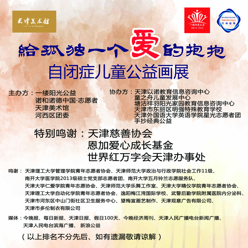 天津美术馆、天津河西区团委、一缕阳光公益、诺和诺德中国·志愿者