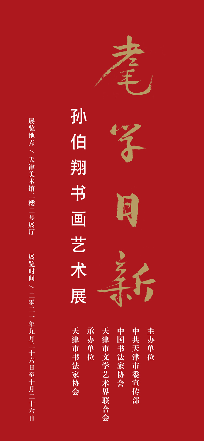 在庆祝中国共产党成立100周年之际,为进一步“传承中国优秀传统文化,助力民族复兴中国梦”,促进书法艺术与时代精神相互融合,推动民族传统艺术文化的传播与交流,由中共天津市委宣传部、中国书法家协会和天津市文学艺术界联合会主办的“耄学日新——孙伯翔书画艺术展”于2021年9月26日在天津美术馆拉开帷幕。此次展览共展出孙伯翔书画作品259幅,书法以魏碑行楷为主,旁及草、隶、篆