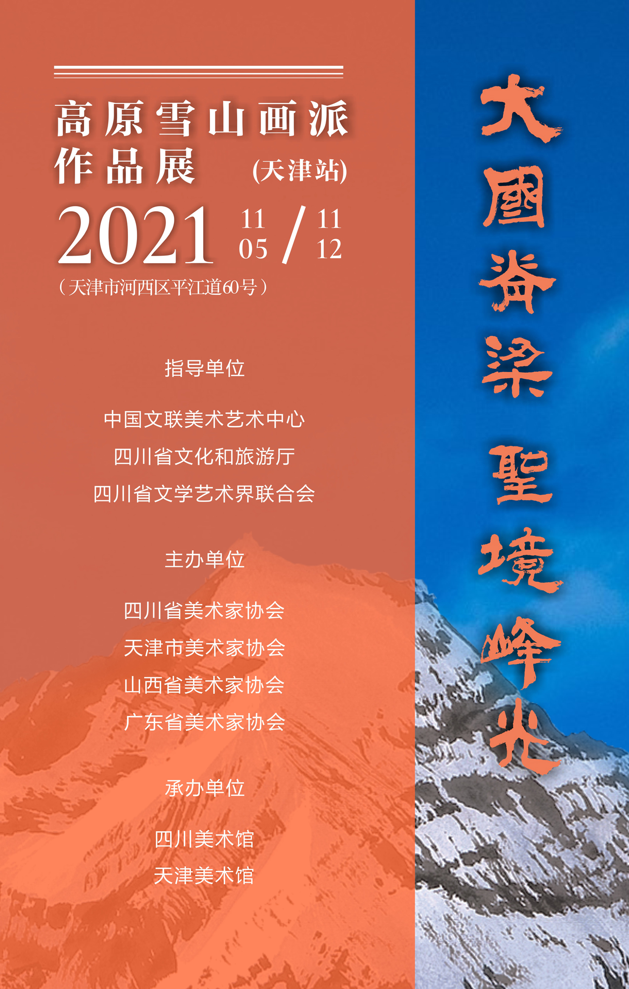 大国脊梁·圣境峰光——高原雪山画派作品展即将于2021年11月5日在天津美术馆拉开帷幕。该展此前曾于2019、2020年先后登陆北京、青海、西藏、云南、新疆、陕西、重庆、贵州、浙江、山东并获得广泛赞誉。源于此,在中国文联美术艺术中心、四川省文化和旅游厅、四川省文学艺术界联合会的指导下,四川省美术家协会、山西省美术家协会、天津市美术家协会、广东省美术家协会于2021年共同开启