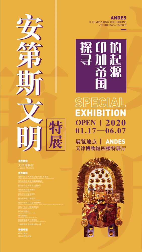 2020年1月17日,“安第斯文明特展——探寻印加帝国的起源”将在天津博物馆隆重开展。中国和秘鲁都是具有多元文明的重要国家,两国人民创造的灿烂历史文化对人类发展有着不可磨灭的贡献。为加强不同国家、不同民族、不同文化的交流互鉴,天津博物馆特举办“安第斯文明特展——探寻印加帝国的起源”,期望借此掀开安第斯文明的神秘面纱,使大众直观地感受异域文明的独特魅力和文化底蕴。