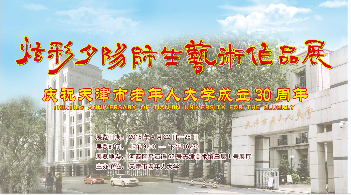 “炫彩夕阳——师生艺术作品展”于2015年4月22日在天津美术馆开幕。“炫彩夕阳——师生艺术作品展”,是其全校师生员工为庆祝天津市老年人大学建校30周年所特别举办的形式多样、丰富多彩的师生艺术作品展。展览展出书法、绘画、摄影、手工艺制作、图像处理约600余件作品,凸显了教师们精湛的教学水平和为老年教育事业辛勤耕耘、无私奉献的精神,展现了银发学子孜孜不倦的求知精神、积