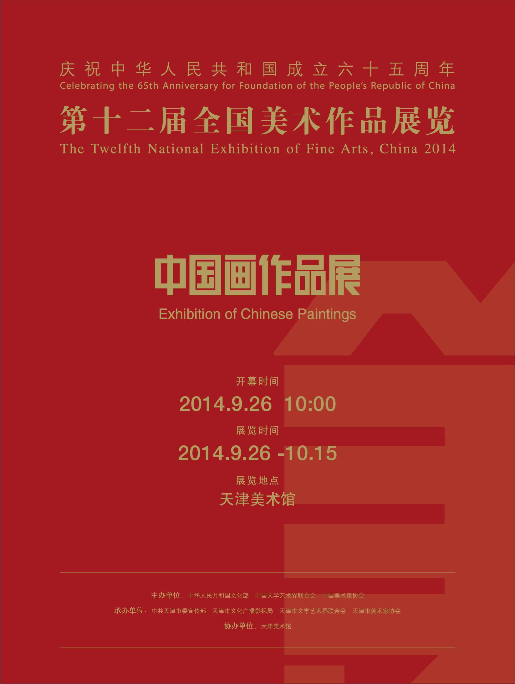 五年一届的全国美术盛宴——“第十二届全国美术作品展览中国画作品展”将于2014年9月26日——10月19日期间在天津美术馆展出。本届全国美展中国画部分是从全国各地选送的1300多件中国画作品汇集天津,由老中青三代中国画艺术家组成的评奖委员会,认真积极履行职责,通过多轮规范、严格的评选,最终遴选出591件(其中包括86件进京作品)成为最终的展览作品。整个评奖过程科学民主、阳光