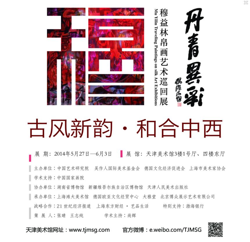 有三千多年历史的中国帛画是中国画的起源,是中华民族的瑰宝。我国知名现代帛画艺术家穆益林先生经过三十多年的研究和探索,传承和创造了崭新的帛画艺术。此次画展旨在弘扬、传播和推广中国帛画,让帛画这中国古老文明的结晶焕发青春,以其神奇的魅力与宣纸水墨绘画共同代表中华民族之绘画艺术,在世界艺坛上并驾齐驱、共领风骚。展厅有“帛画春秋”、“古风新韵”、“和合中西”等三
