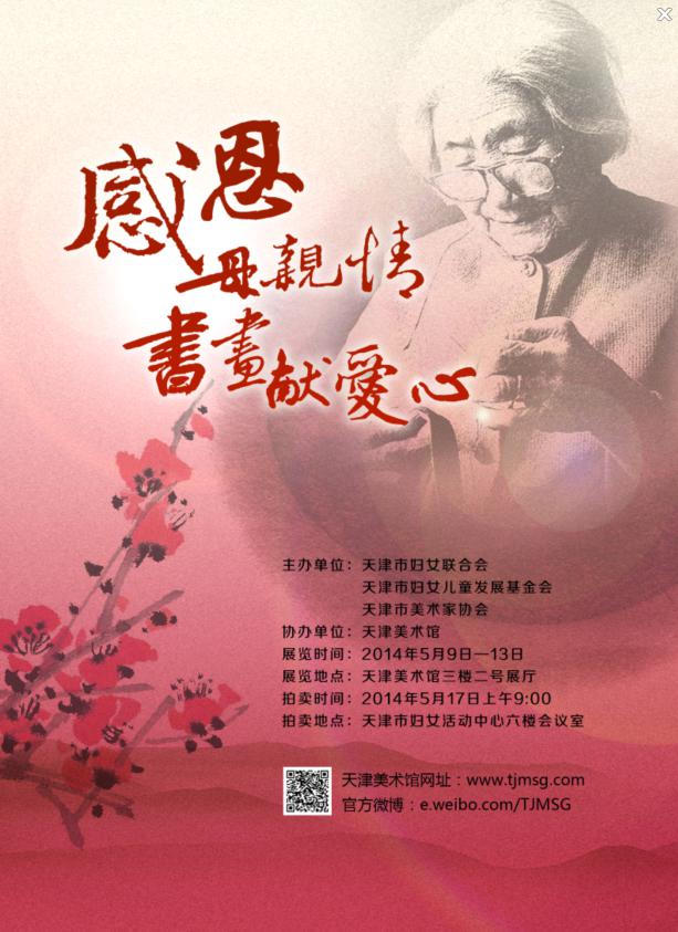 伟大的母爱自古以来就是艺术家们讴歌的对象,如今新时代的女性们更是续写着属于母亲的光辉篇章。值此母亲节到来之际由天津市妇女联合会、天津市美术家协会、天津市妇女儿童发展基金会主办,天津美术馆协办的“感恩母亲情书画献爱心”将于2014年5月9日——13日期间在天津美术馆展出。本次展览展出的作品来自天津市美术协会众多知名画家怀着对困难母亲的关心和支持,倾情奉献的艺术作品