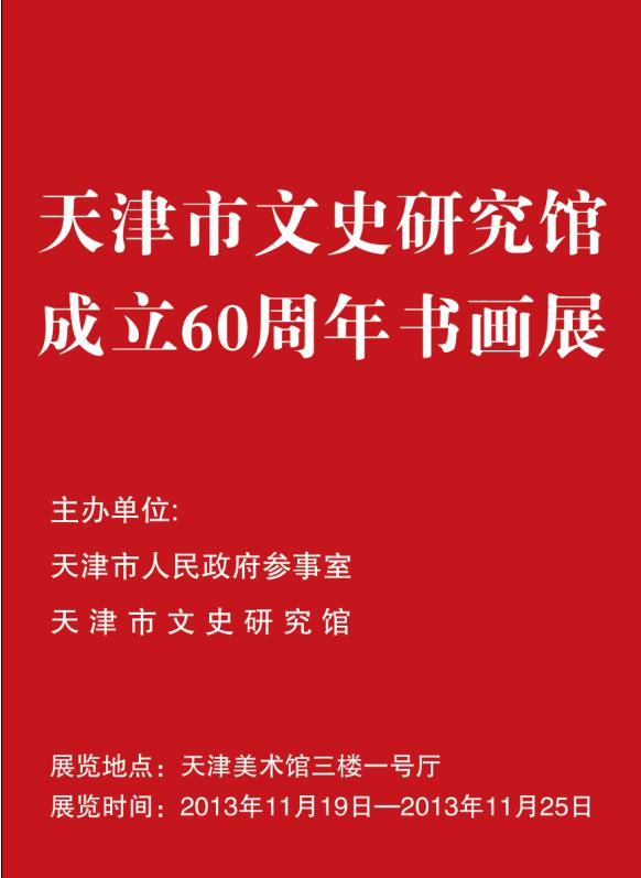 天津市文史研究馆自1953年成立至今,汇集了一大批年高德劭、造诣宏深的专家学者和社会名流,诸位硕学以文史研究馆为阵地,各展所长,各尽所能,勤奋工作,无私奉献,在“存史资政、文化建设、统战联谊”等领域卓有建树,硕果累累。60年来,馆员们积极开展文史研究和艺术创作,取得了丰硕成果。馆员共出版各种书画、文论专著300余部,捐赠文史馆书画精品近2000幅。本次展览暨天津文史研