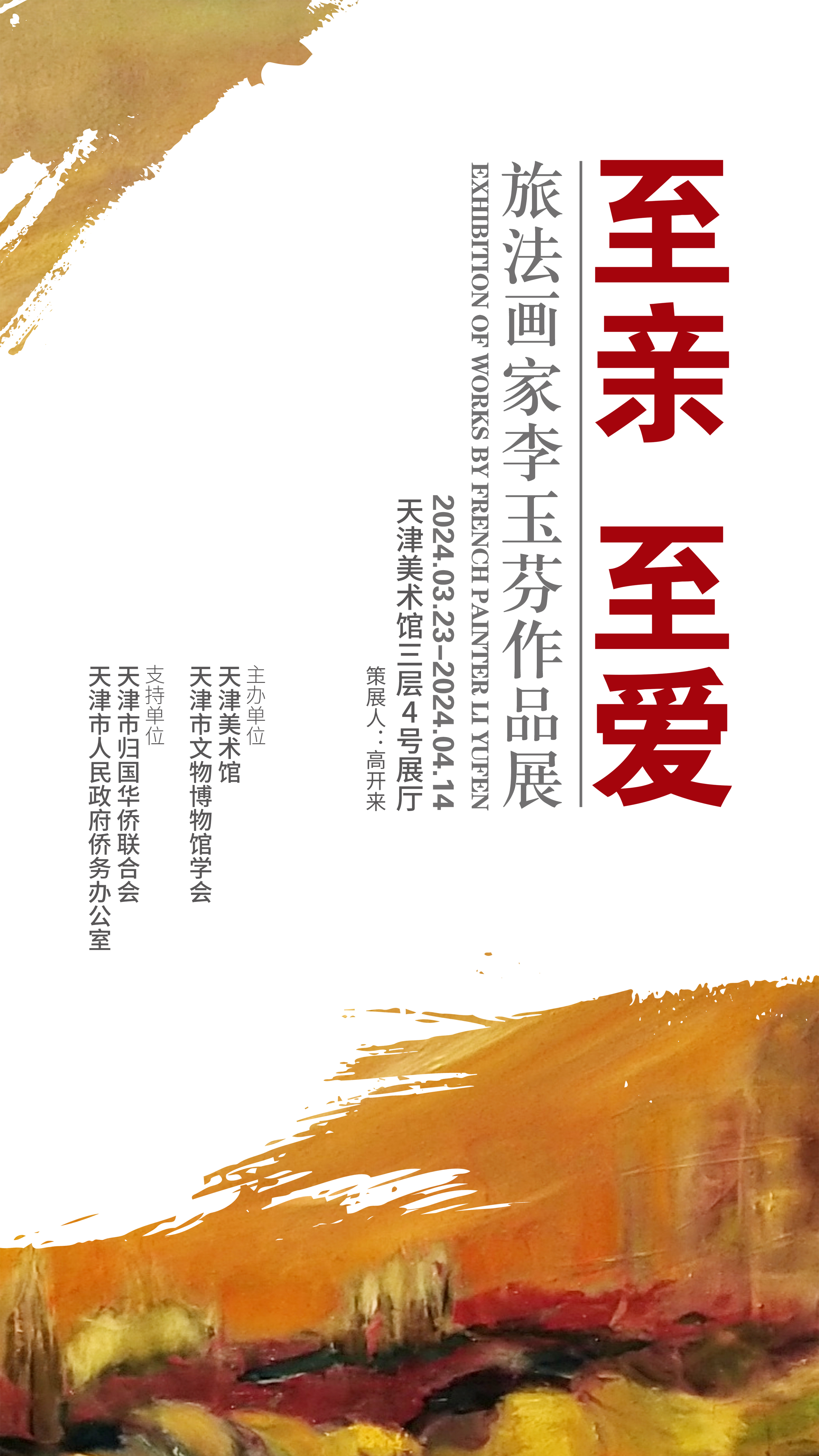 由天津美术馆、天津市文物博物馆学会联合主办的《至亲至爱—旅法画家李玉芬作品展》于2024年3月23日至4月15日在天津美术馆三层4号厅举办。“心如画,画如心”旅法画家李玉芬将自然界无声的美展现在我们眼前,并以一种崭新的思路和理念呈现着她对绘画的态度与精神。李玉芬出生于天津,后移居法国。她认为,作为一名画家,不仅要具备家国情怀和责任心,也应该怀揣自尊自爱的态度永葆学习