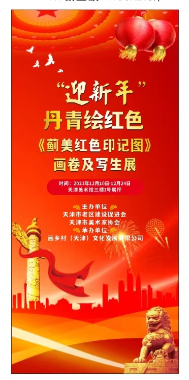 由天津市老区建设促进会、天津市美术家协会主办,画乡村(天津)文化发展有限公司承办的“迎新年”丹青绘红色《蓟美红色印记图》画卷及写生展于12月10日至12月24日在天津美术馆三层3号厅举办。《蓟美红色印记图》运用红色资源,发扬红色传统,传承红色基因,弘扬革命精神,针对天津蓟州革命老区部分红色遗址、旧址等进行创作,整体风格山河壮观,激情澎湃,体现不畏艰难、不忘初心,砥
