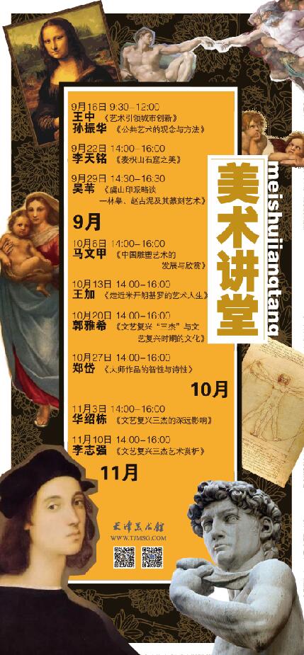 天津美术馆“美术讲堂”自2012年7月开讲以来,在近六年的时间里开展讲座近二百场,邀请到了众多各领域的老师,服务观众数万人。“美术讲堂”一直以来都秉承高质量、高水平的原则,为观众们奉