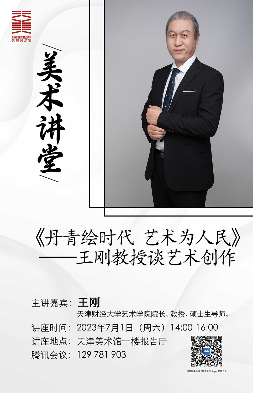 2023年7月1日,王刚老师将给大家带来题为《“丹青绘时代艺术为人民”——王刚教授谈艺术创作》的公益讲座。2021年,第十一届全国文代会、十届作代会的报告中要求文艺家“从时代之变、中国之