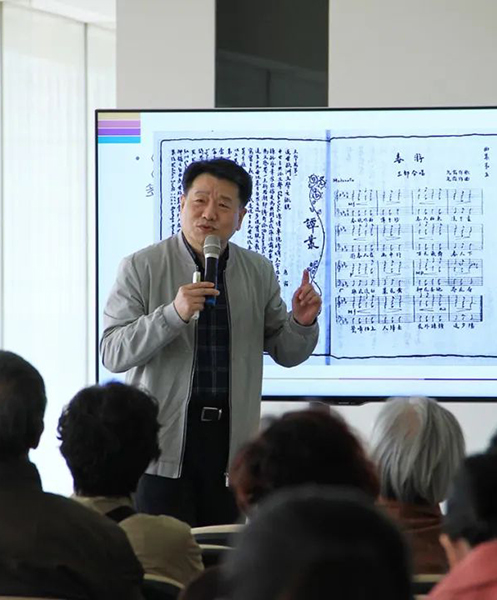 4月20日下午,“春游——李叔同歌词书法邀请展”在天津美术馆开幕,我们特别邀请了天津音乐学院靳学东教授在美术馆四楼观景平台为观众进行了题为“李叔同的音乐艺术贡献——从合唱曲《春游》