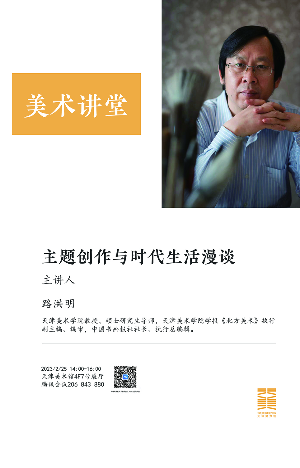 2月25日下午,“美术讲堂”邀请到了天津美术馆学院教授、硕士生导师,天津美术学院学报《北方美术》执行副主编、编审,中国书画报社社长陆洪明老师,为大家带来“主题创作与时代生活漫谈”主
