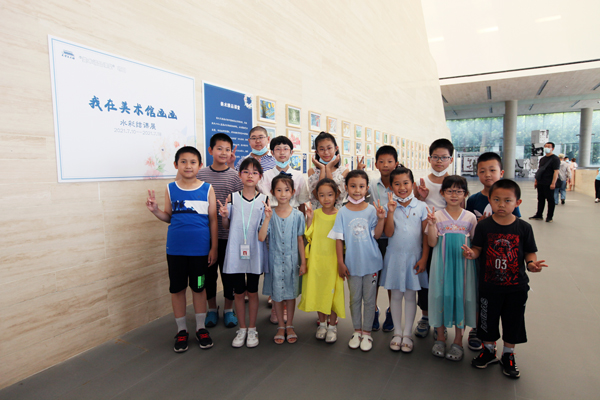 2021年7月10日上午,“我在美术馆画画——精品课堂水彩结课展”在天津美术馆二层公共空间开幕。天津美术馆副馆长卢永琇,综合办公室主任李颖,以及本学期“精品课堂”水彩主讲老师一墨老师,