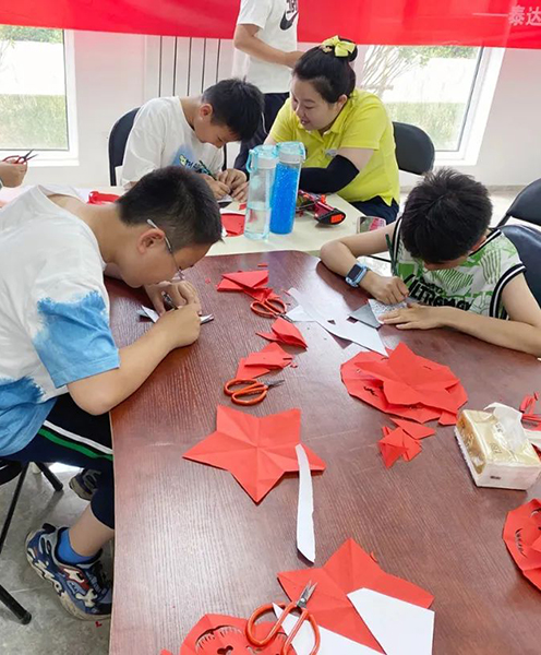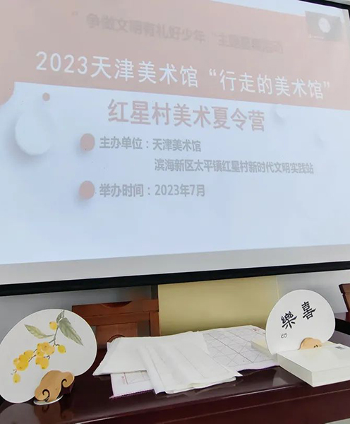 7月4日,天津美术馆综合办公室主任李颖率“行走的美术馆”小分队田婷、傅琳,实习生张秀彩、甘熙媛一行5人,走进天博对口帮扶村——滨海新区太平镇红星村。夏令营集合书法、篆刻、写意国画等