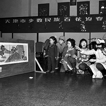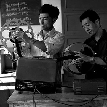 1981年10月1日武清县南蔡村公社文化站放映队员整理影片准备放映