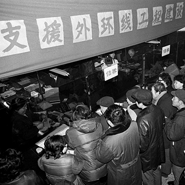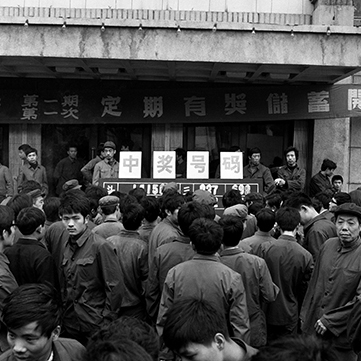 1981年10月19日天津市有奖储蓄开奖大会结束后,群众争相观看中奖号码