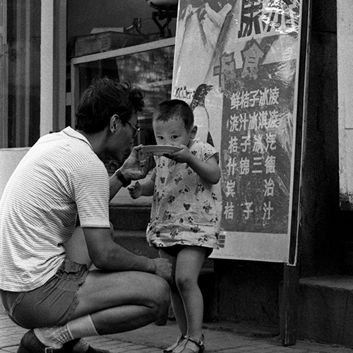 1987年7月5号爷俩在天津康乐第二冷食部门外吃刨冰里面客满于嘉帧